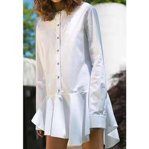 This white blouse’s asymmetrical hemline is a godsend. It’s like having half a skirt sewn onto a shirt. When wearing this top, there’s absolutely no point in zipping and buttoning your pants at all. In fact, you could have your pants down to your knees, and nobody would be the wiser! How’s that for fashion innovation?
