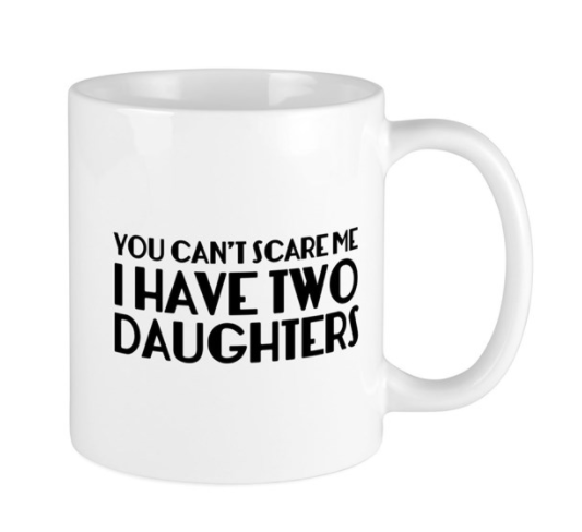 “You Can't Scare Me. I Have Two Daughters.” 11 oz Mug (Cafe Press, $9.99)