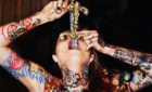 While exiting her town car, Albright’s dress slipped open to reveal her panty-less crotch.
